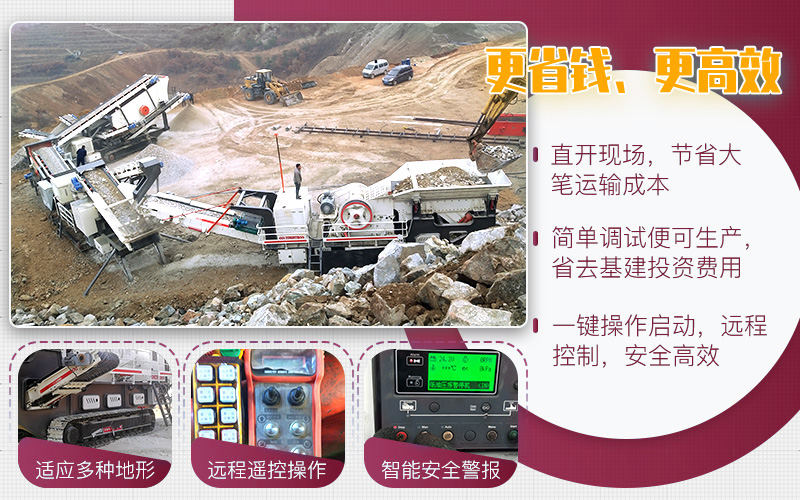 大型磕石制砂一體機(jī)是通過輪胎式或履帶式車架與鄂破、反擊破、錘破、圓錐破、制砂機(jī)、振動篩靈活配置,整體搭配緊湊,油電兩用,配有PLC智能電控箱,可遠(yuǎn)程控制,根據(jù)客戶的實(shí)際生產(chǎn)狀況不同,配置方案多種多樣,比如以下客戶的方案。